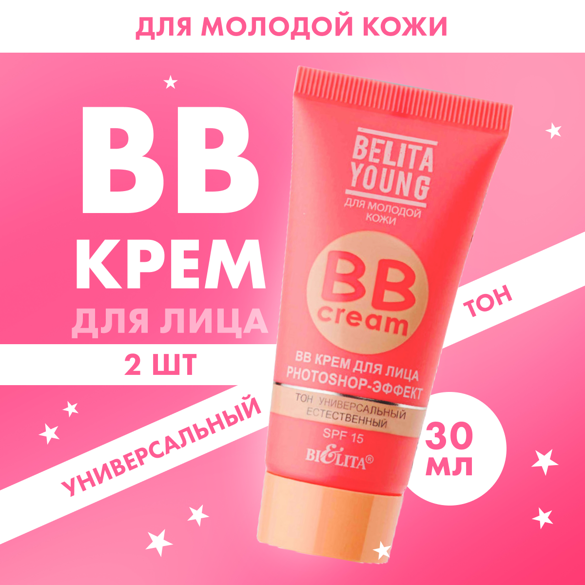 BB Крем для лица Belita, Young photoshop-эффект, 30 мл, SPF 15, крем тональный, BB cream, естественный универсальный тон 2шт.