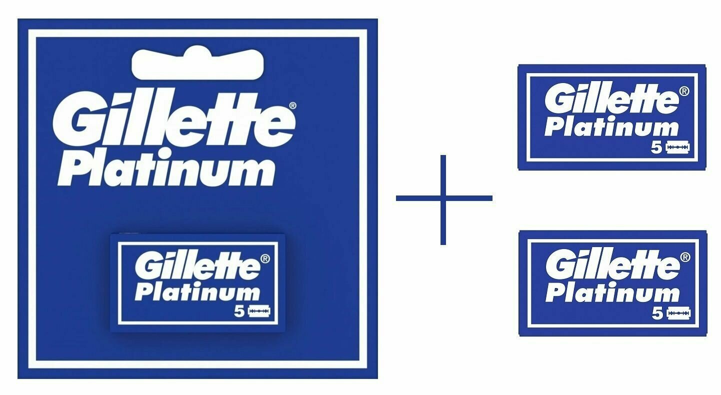Лезвия двухсторонние для бритвы Gillette "Platinum", классические, для T-образных бритв и шаветок, 3 упаковки по 5 шт.