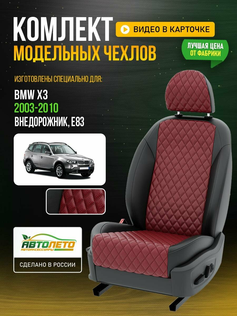 Купить Чехлы для BMW Х3 1 E83 2003-2020 Бордовый Черный Экокожа с ромбом и перфорацией Авто Лето LA888C98