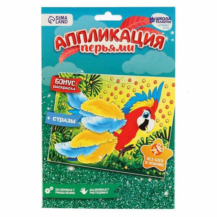 Набор для творчества. Аппликации перьями и стразами «Какаду» 21 х 14,8 см интересное:
