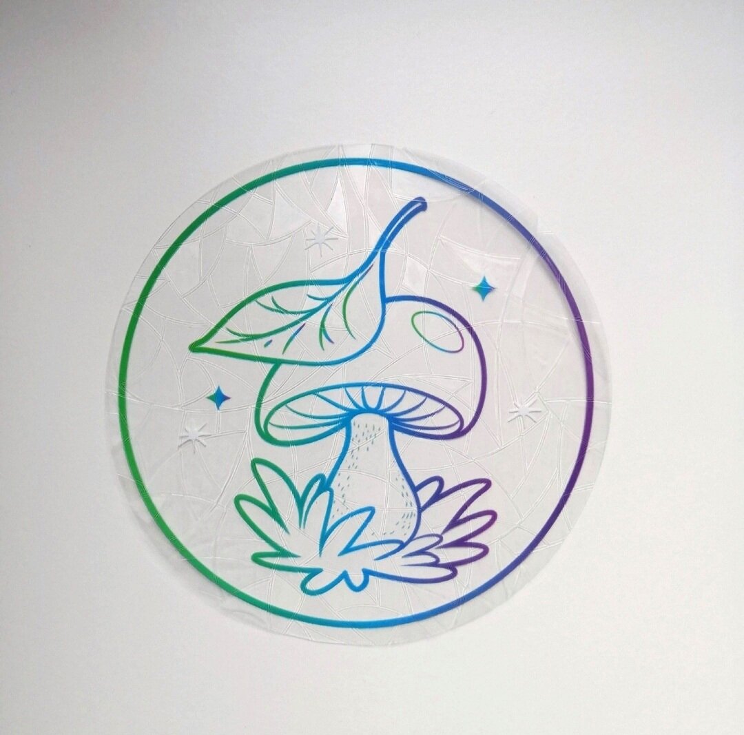 Купить Наклейка на окно радуга / Призма радужная Rainbow / Ловец солнца ( Грибы 2 )