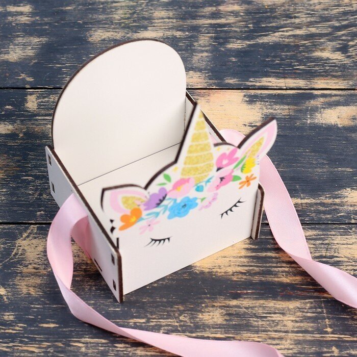 Купить Кашпо деревянное 11×9.5×14.5 см уникальное "Конверт Единорог", ручка лента, с печатью