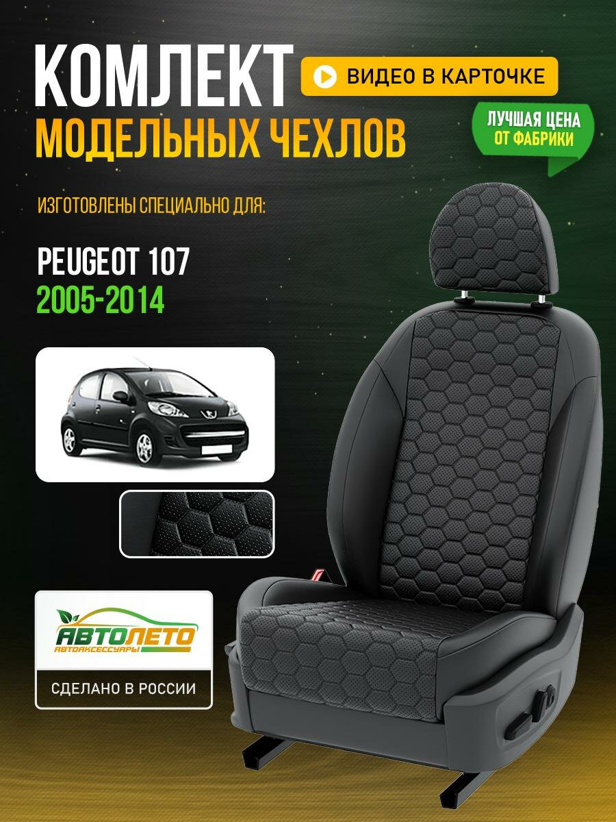 Чехлы для Peugeot 107 1 2005-2014 Черный Черный Экокожа соты Авто Лето LA426C134 интересное: