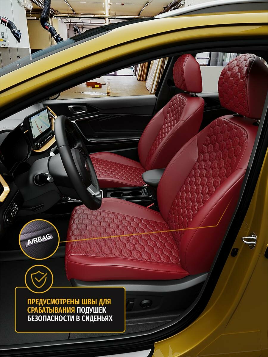 Чехлы для Volkswagen T-6 T6 Рестайлинг 2019-2021 Бордовый Бордовый Экокожа соты Авто Лето LA144C116 интересное: