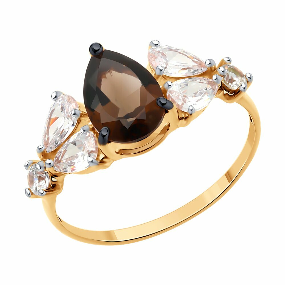 Кольцо SOKOLOV из золочёного серебра с раухтопазом и фианитами 92014452, размер 19.5 интересное: