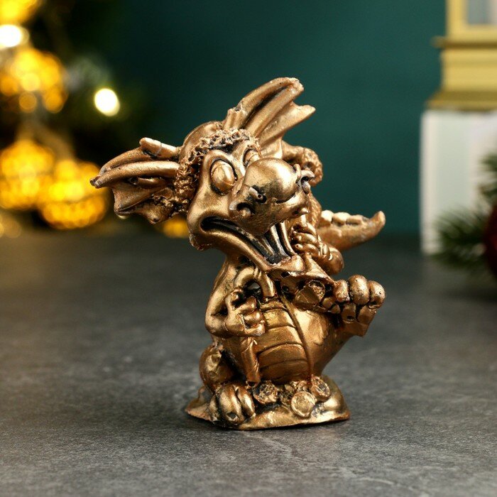 Купить Фигура Дракон с мешком подарков бронза, 8х5х5см