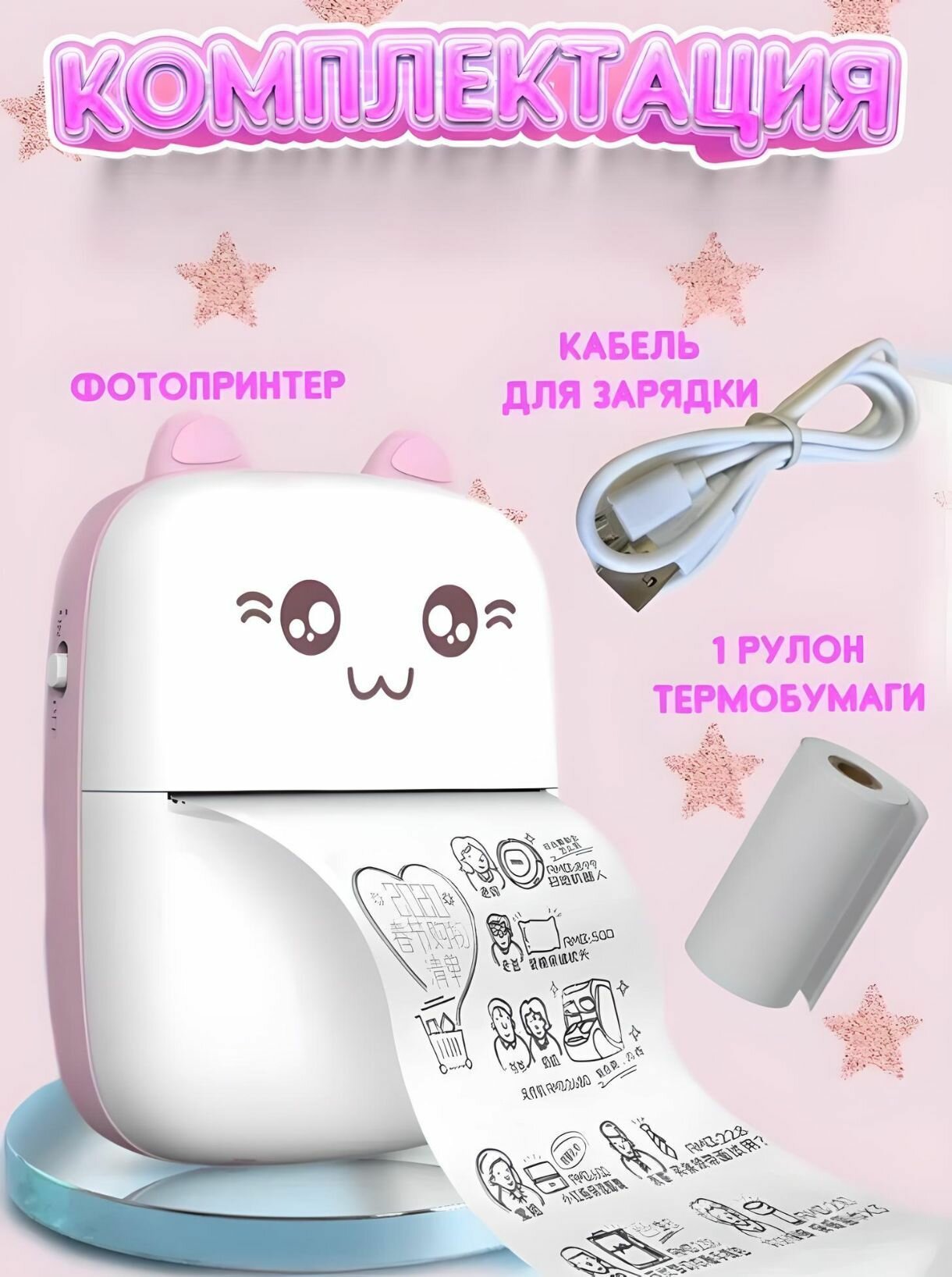 Беспроводной мини термопринтер детский карманный для телефона, для печати фото, этикеток, чеков интересное: