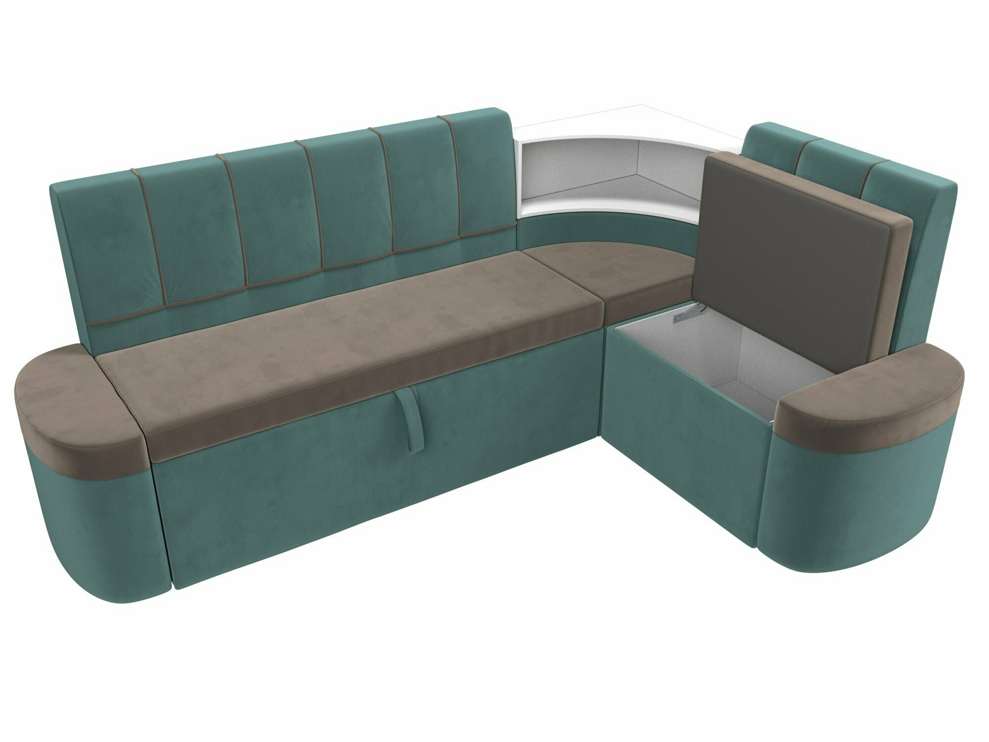 Кухонный угловой диван Тефида правый угол, Велюр коричневый и бирюзовый интересное: