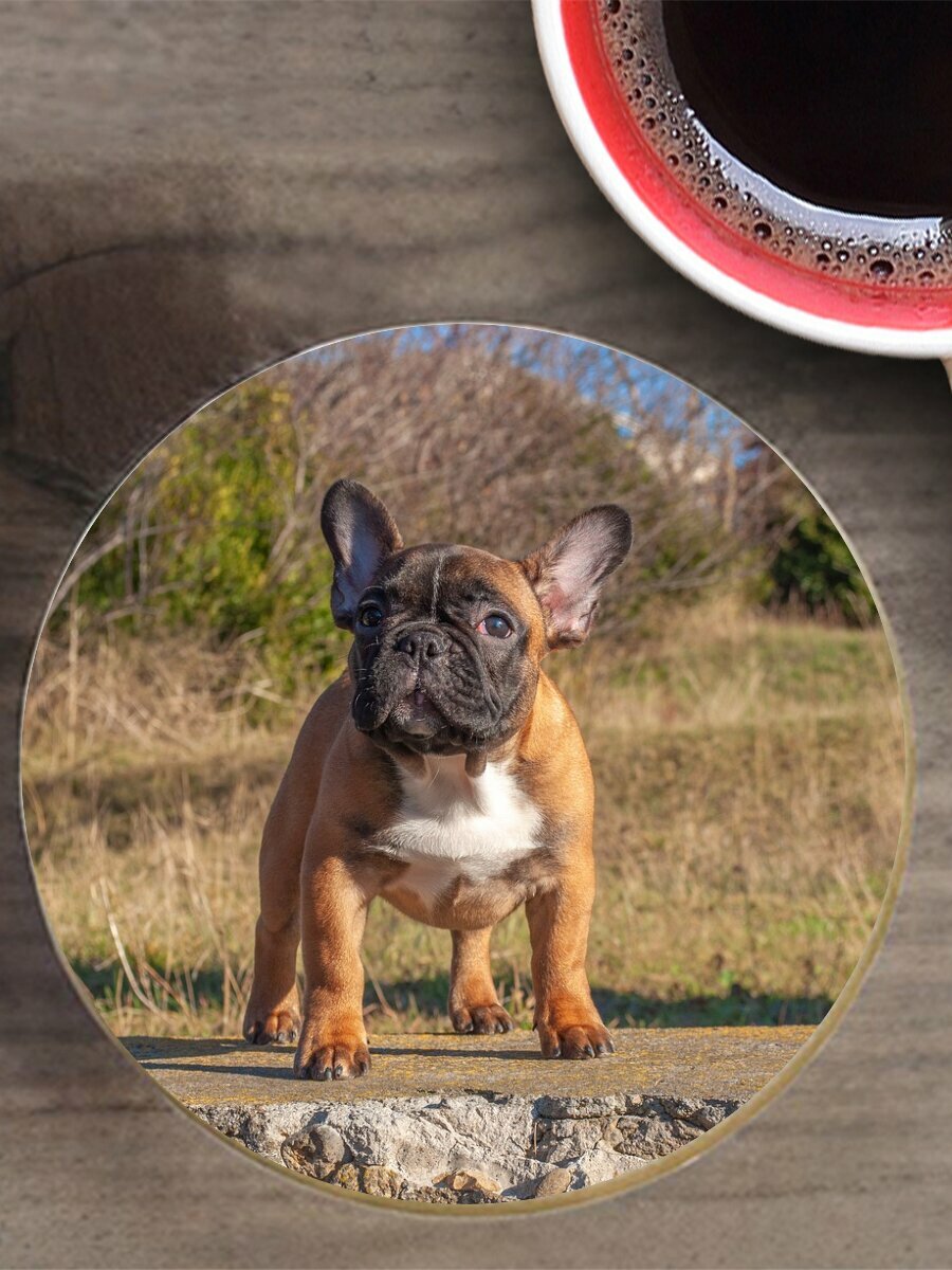 Купить Подставка под горячее "Французский бульдог, щенок, домашний питомец" 10 см. из блого мрамора