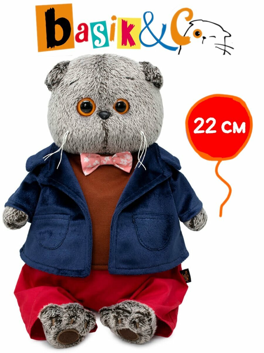 Купить Игрушка мягкая КОТ басик в синем бархатном пиджаке 22 см BUDI BASA Ks22-238