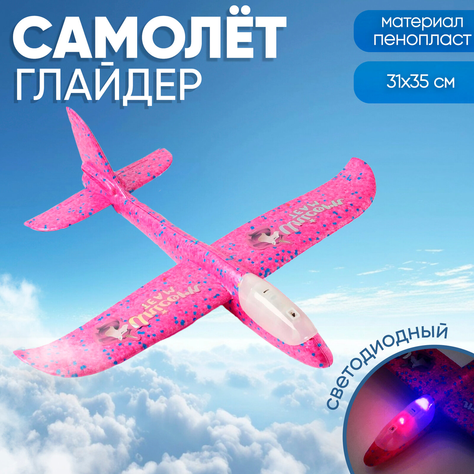 Самолёт Unicorn team, розовый, диодный интересное: