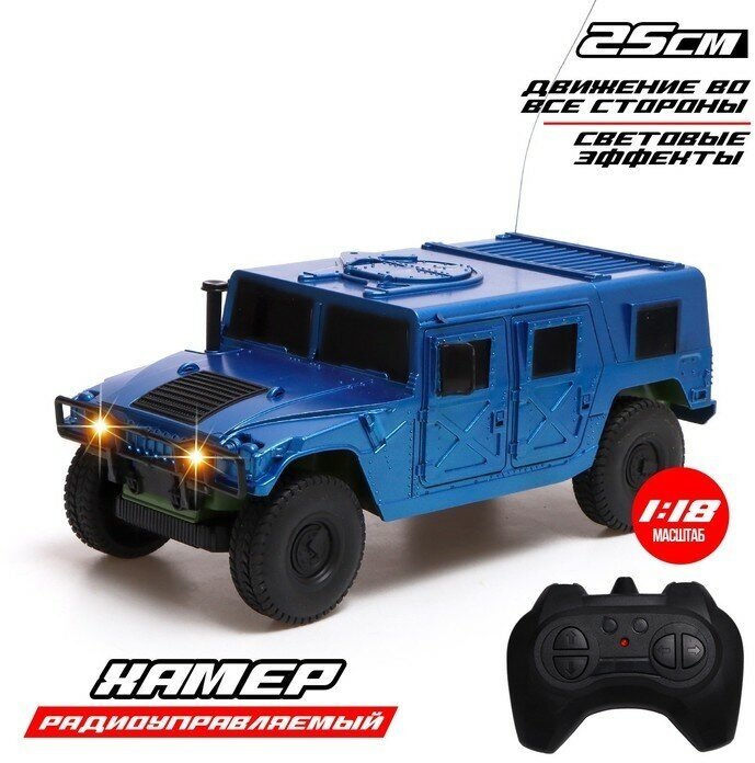 Купить Джип радиоуправляемый «Хамер», свет, работает от батареек, 1:18, цвет синий