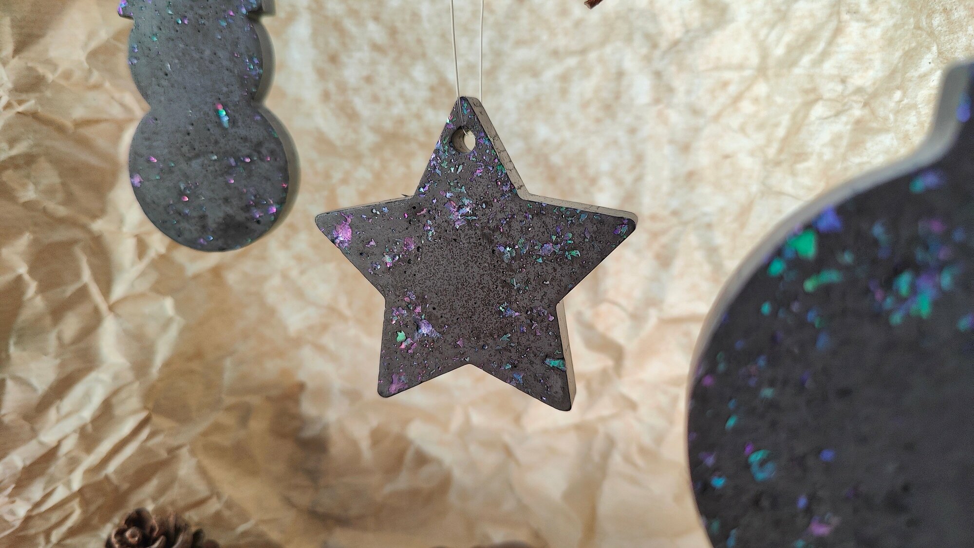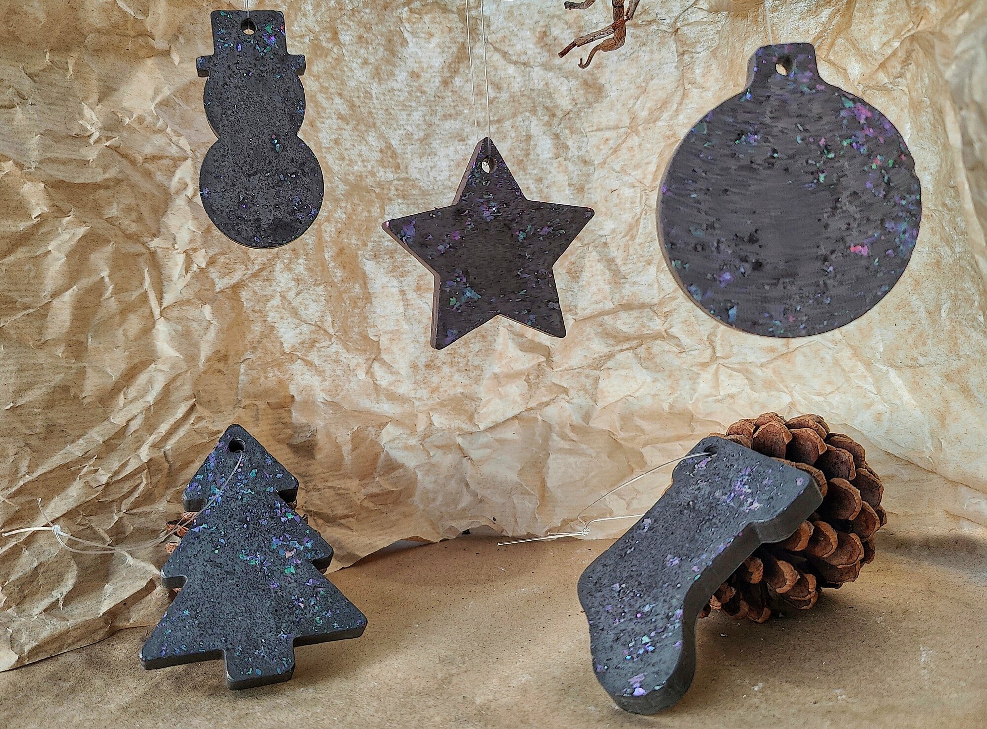 Набор ёлочных украшений черный камень и сиреневый хамелеон интересное: