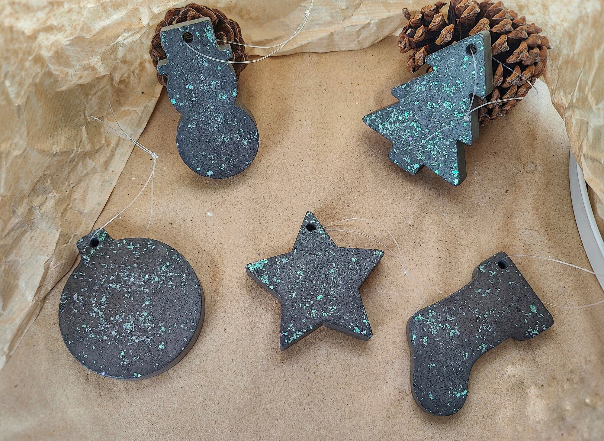Набор ёлочных украшений черный камень и изумрудный хамелеон интересное: