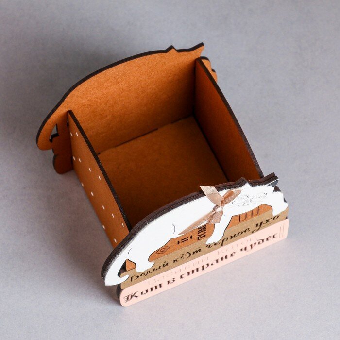 Кашпо деревянное "Учёный котик", 12х10х11 см, дуб, бежевый интересное: