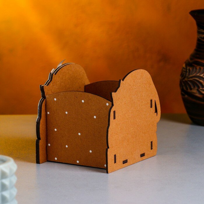 Купить Кашпо деревянное "Учёный котик", 12х10х11 см, дуб, бежевый