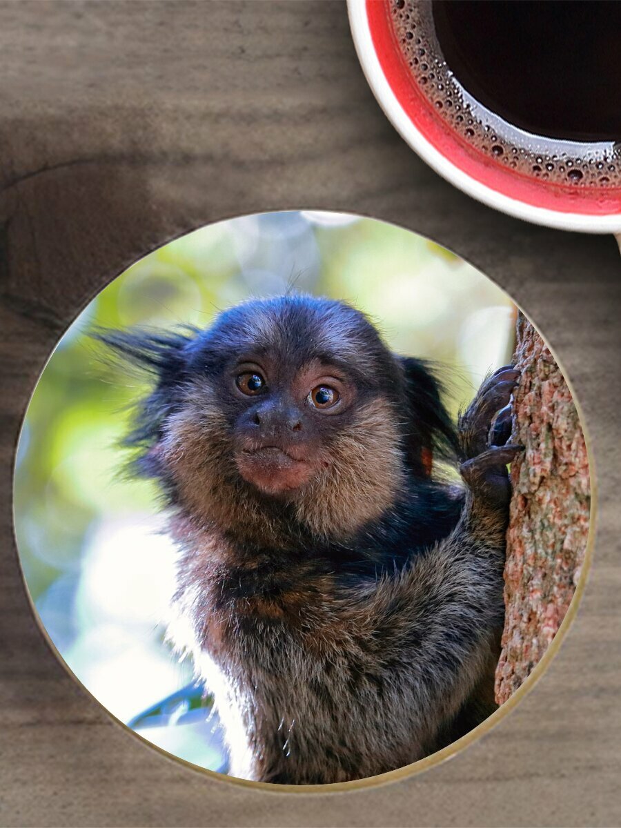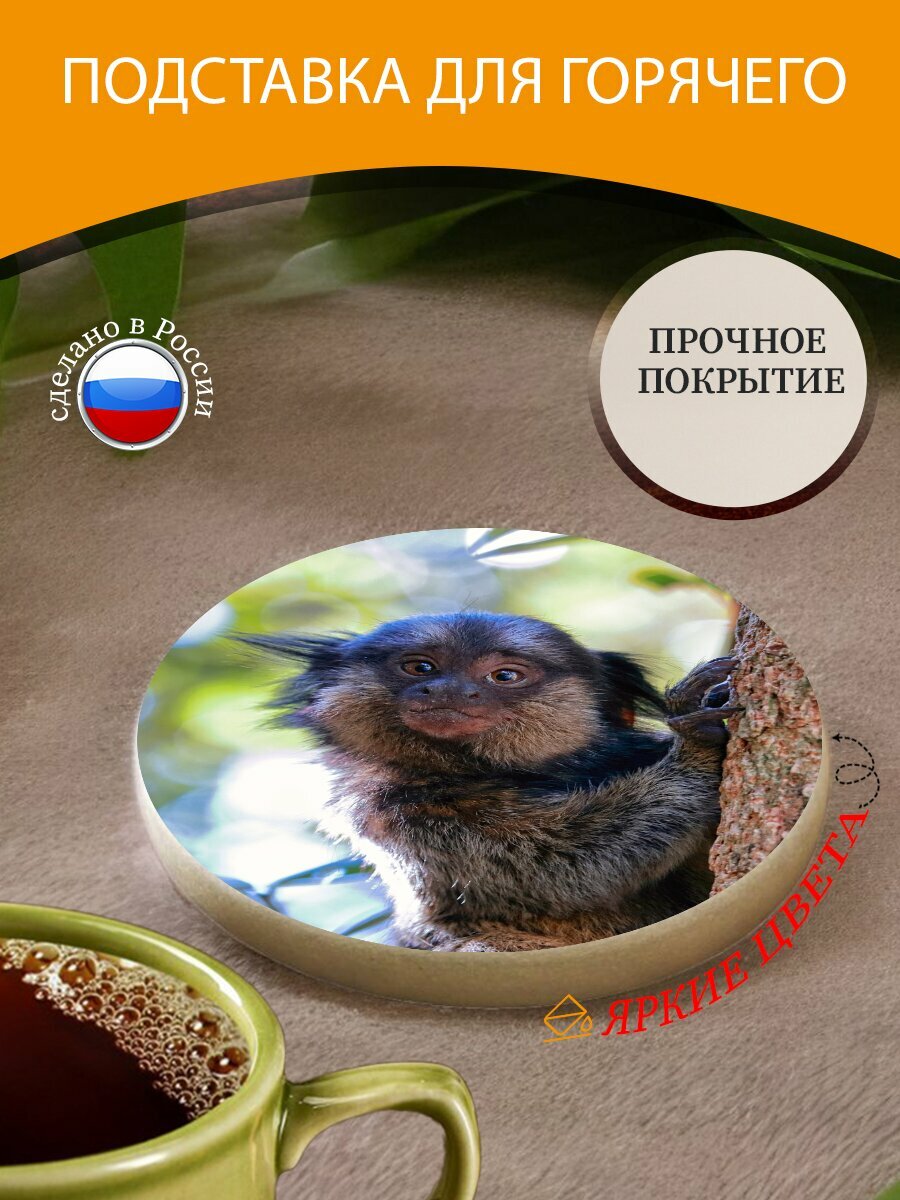 Подставка под горячее "Мартышка, животное, дерево" 10 см. из блого мрамора интересное: