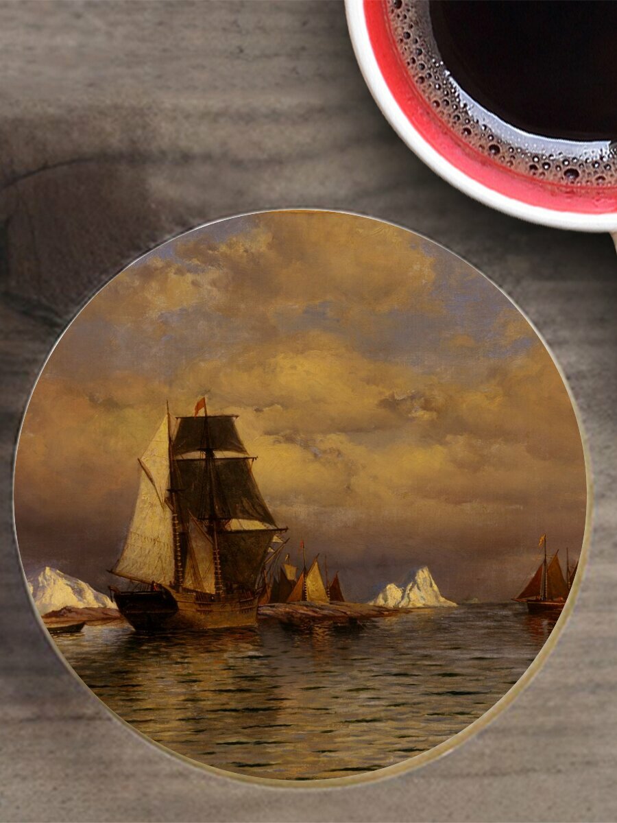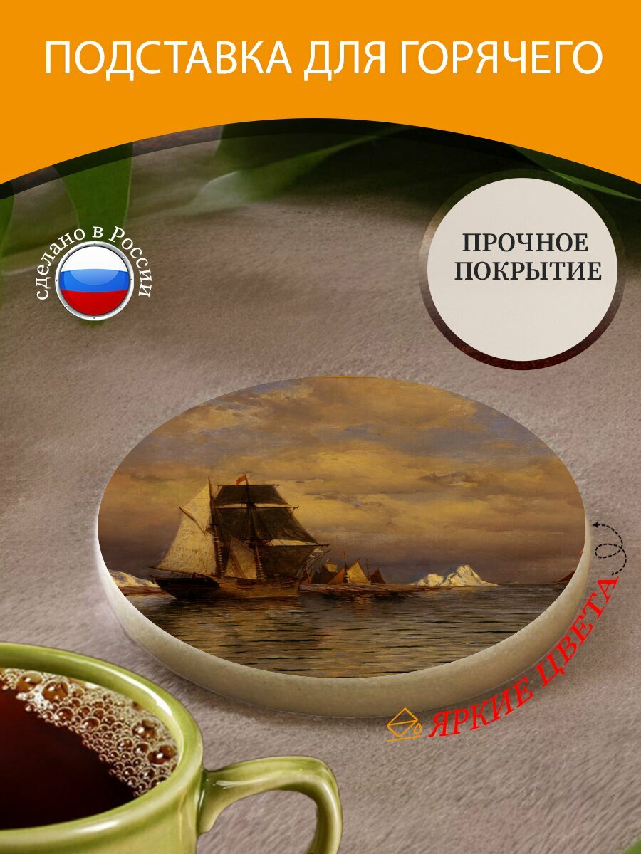 Купить Подставка под горячее "Уильям брэдфорд, изобразительное искусство, артистический" 10 см. из блого мрамора