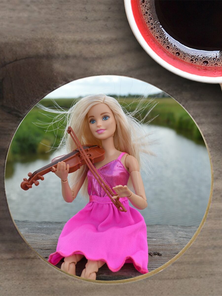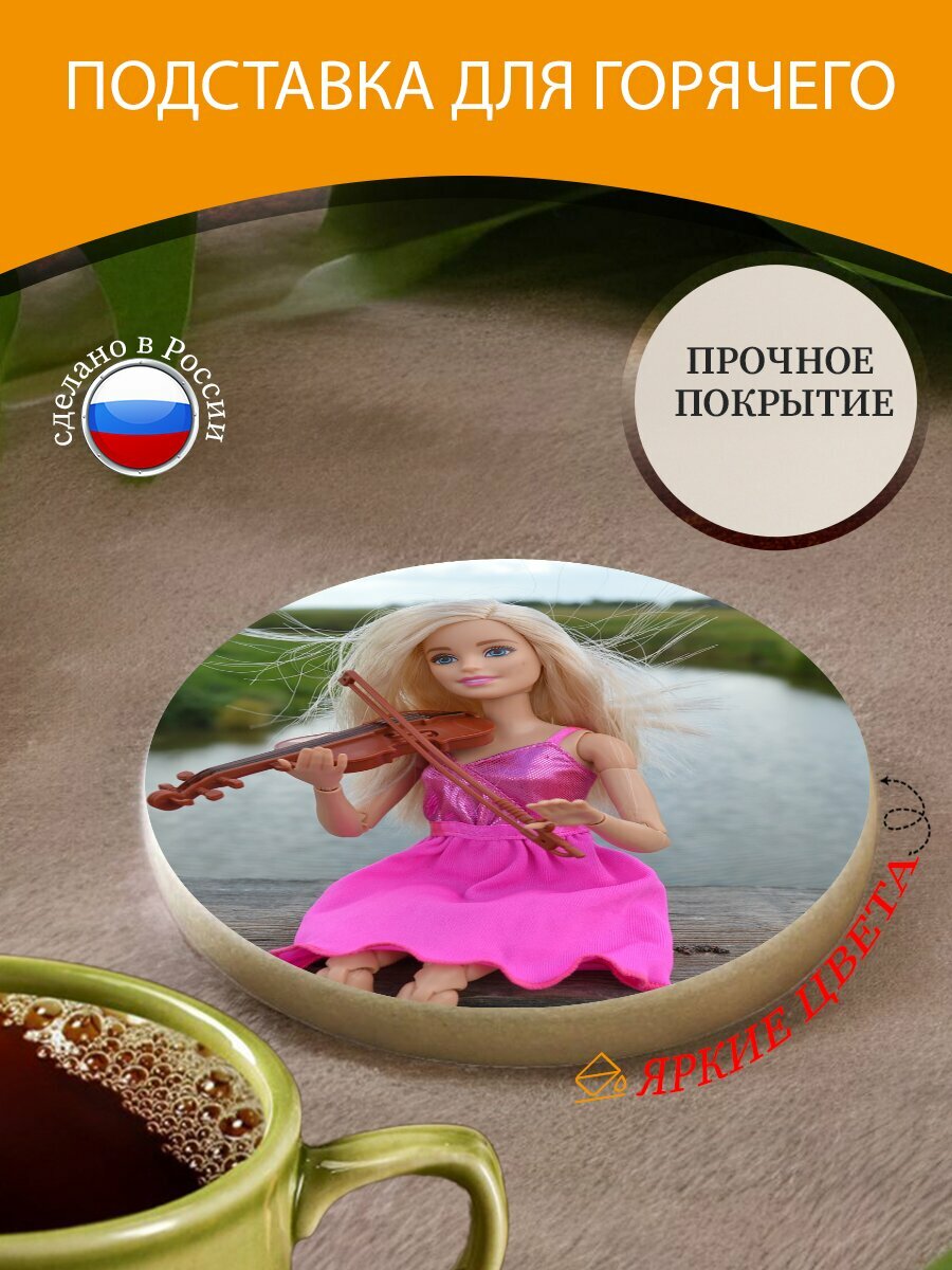 Подставка под горячее "Скрипка, играющий, барби" 10 см. из блого мрамора интересное: