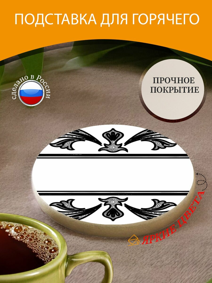 Подставка под горячее "Рамка, винтаж, богато украшенный" 10 см. из блого мрамора интересное: