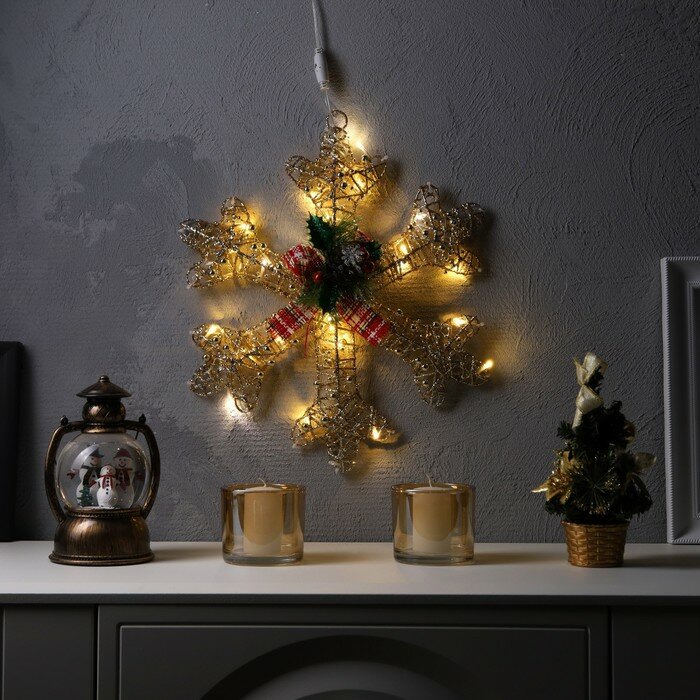 Светодиодная фигура «Снежинка с бусинами» 40 см, металл, 220 В, свечение тёплое белое интересное: