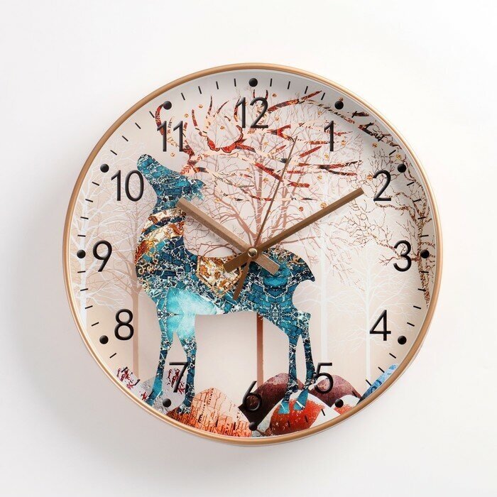 Купить Часы настенные, серия: Интерьер, "Олень", плавный ход, d-30 см, АА