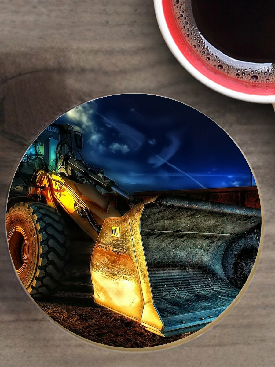Подставка под горячее "Экскаватор, тяжелая техника, строительство" 10 см. из блого мрамора интересное: