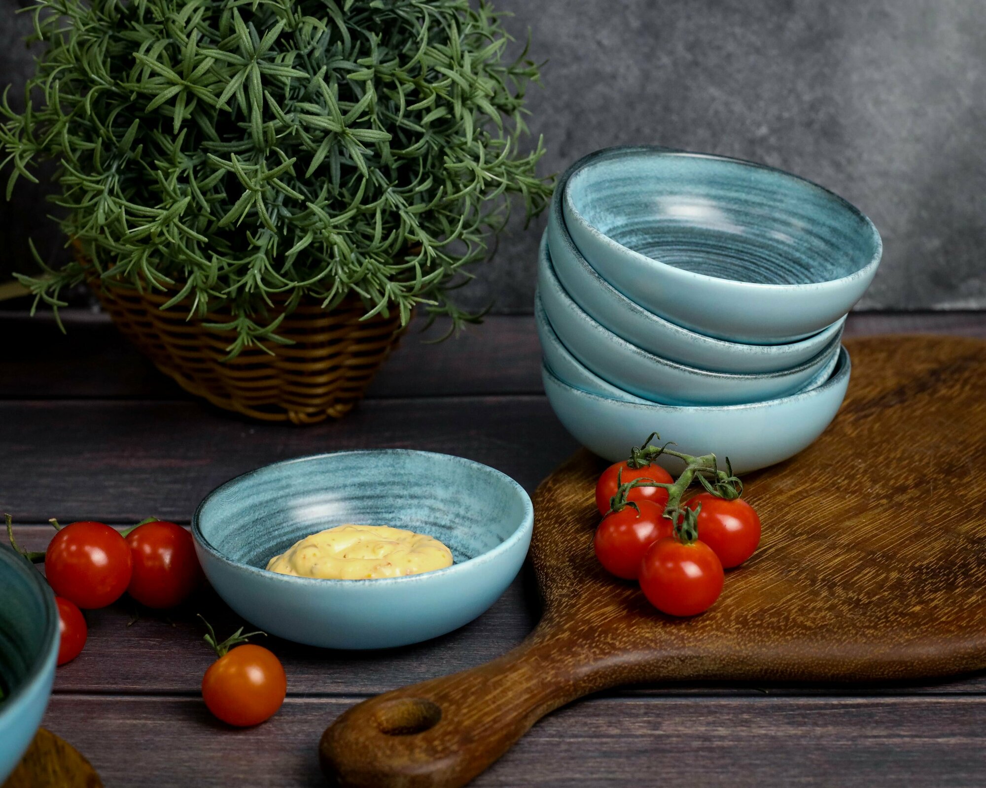 Набор соусников Porland Lykke Turquoise 95 мл., 6 шт., фарфор интересное: