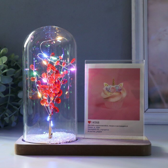 Купить Фоторамка дерево 9х13 см с подсветкой "Красное деревце" от батареек 2хLR1130 19х9х18,5 см
