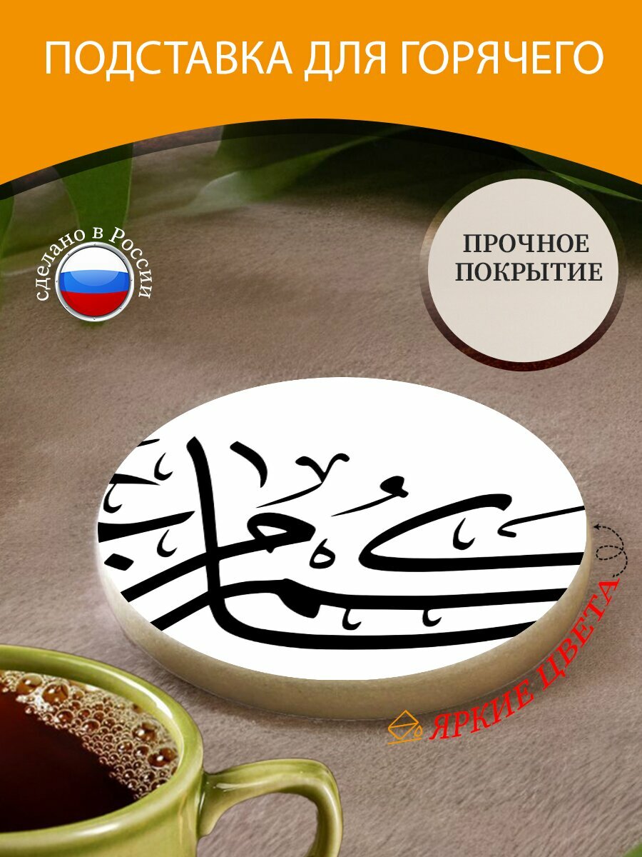 Подставка под горячее "Арабский, ислам, бог" 10 см. из блого мрамора интересное:
