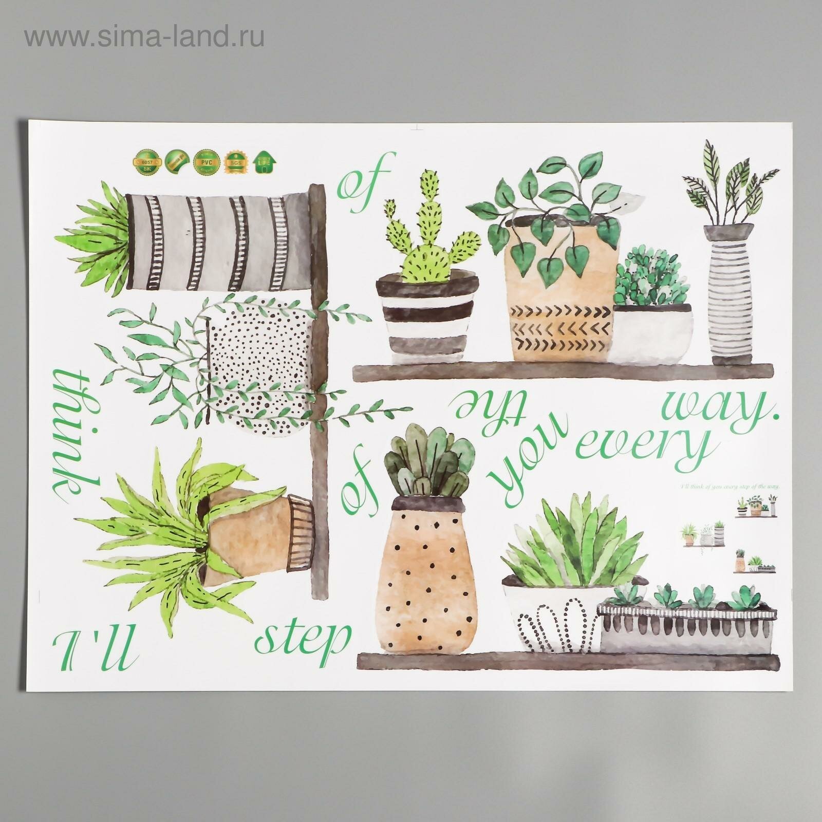 Наклейка пластик интерьерная "Растения в горшочках" 45х60 см интересное: