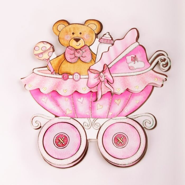 !Набор 3 штуки - Декоративная самоклеющаяся наклейка "Коляска розовая", 35,5*25 см.
