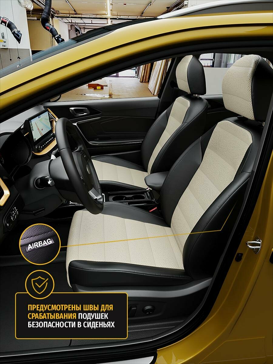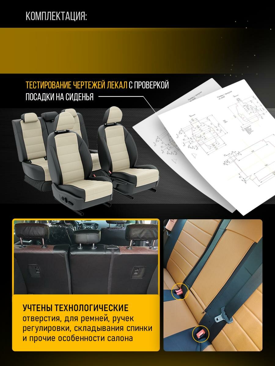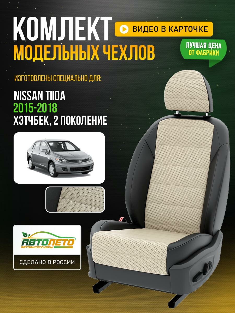 Чехлы для Nissan Tiida 2 2004-2018 Кремовый Черный Экокожа с перфорацией Авто Лето LA455C74 интересное: