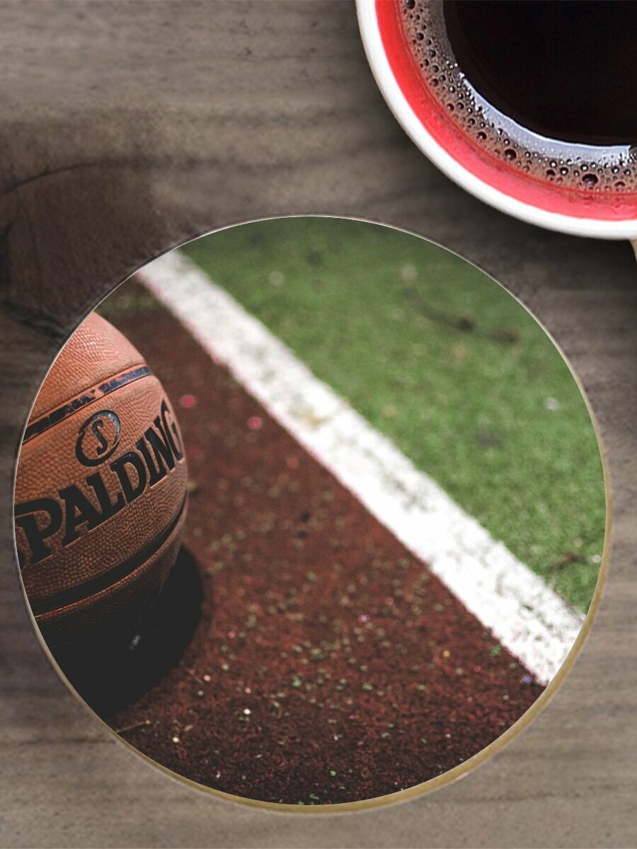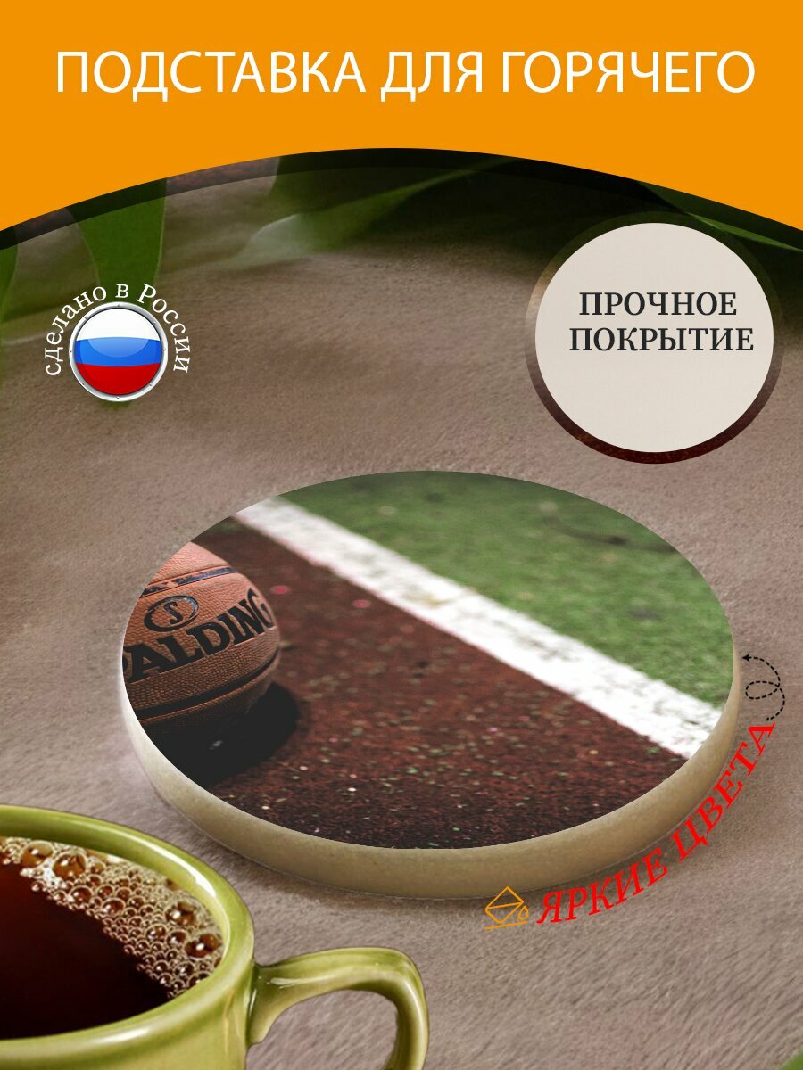 Подставка под горячее "Баскетбол, мяч, spalding" 10 см. из блого мрамора интересное: