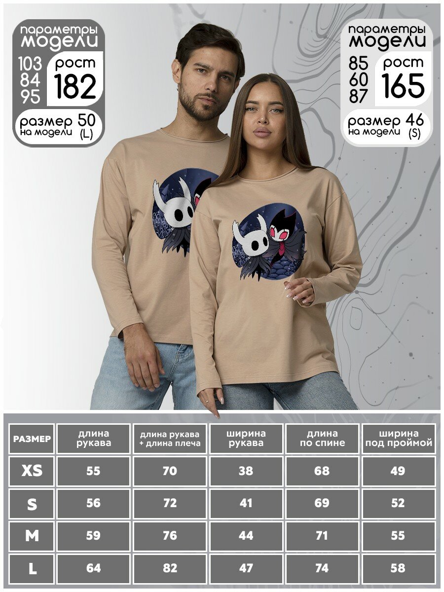 Лонгслив бежевый с принтом Игры Hollow Knight (Полый Рыцарь, Холоу Найт, игры, Metroidvania, Платформер) - 337 oversize интересное:
