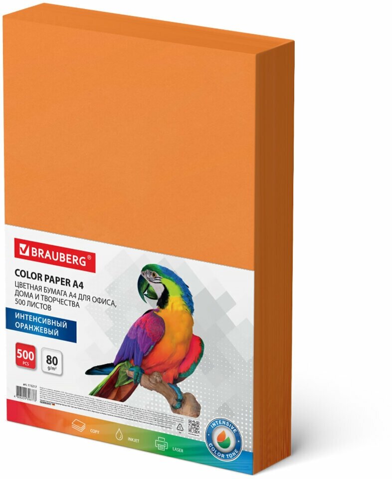 Бумага цветная BRAUBERG, А4, 80 г/м2, 500 л., интенсив, оранжевая, для офисной техники, 115217, 115217 интересное: