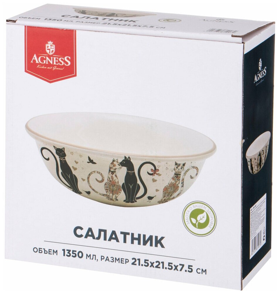 Набор из 4 штук Салатник Agness "Парижские коты" 21,5х21,5х7,5см/1350мл, керамика (358-1907/4) интересное: