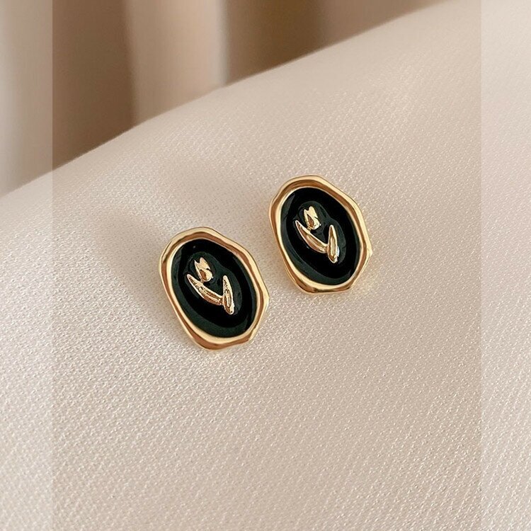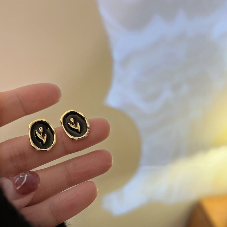 Серьги-пусеты в корейском стиле женские(цветы на черном фоне) интересное: