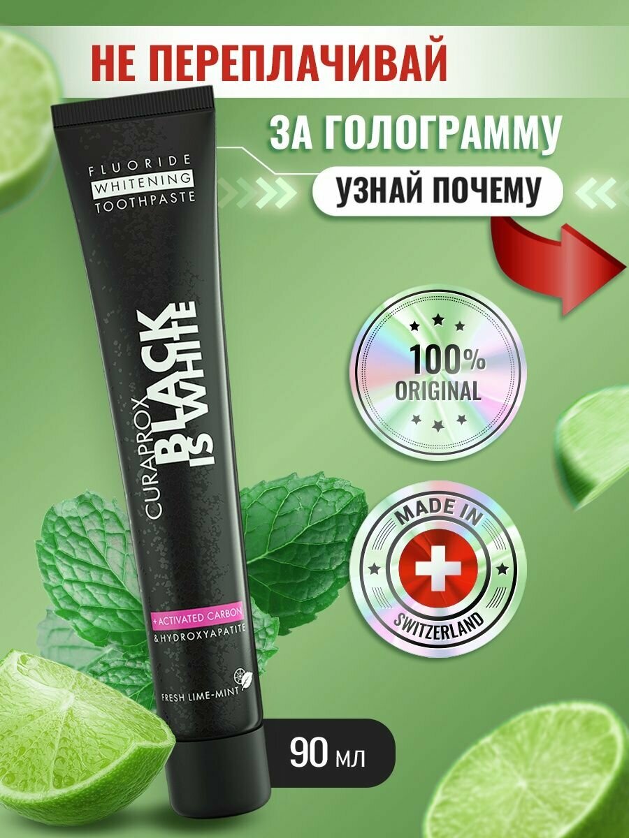 Ниже Вы можете прочитать отзывы на Зубная паста Curaprox Black Is White, лайм, 90 мл, 90 г, ознакомится с подробными характеристиками, посмотреть интересные обзоры и фотографии на Зубная паста Curaprox Black Is White, лайм, 90 мл, 90 г.
