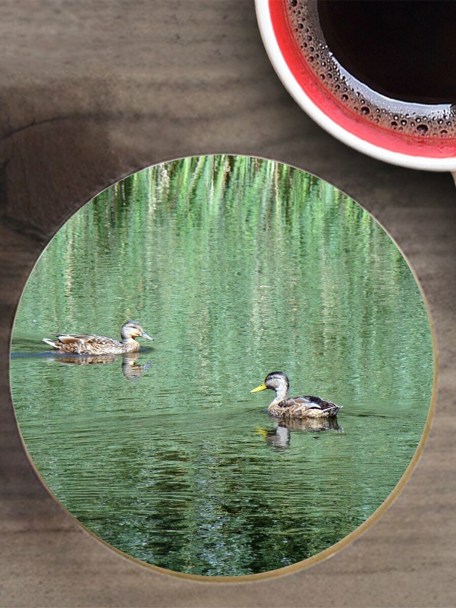 Купить Подставка под горячее "Утки, дикие утки, пруд" 10 см. из блого мрамора