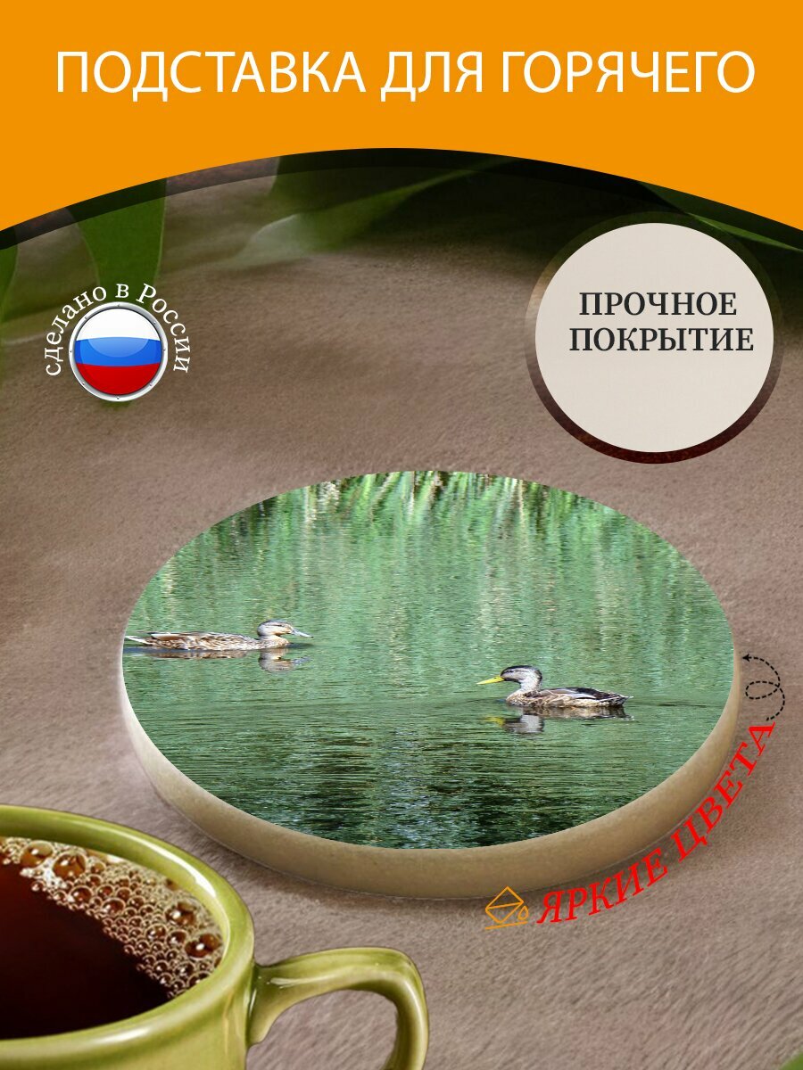 Подставка под горячее "Утки, дикие утки, пруд" 10 см. из блого мрамора интересное:
