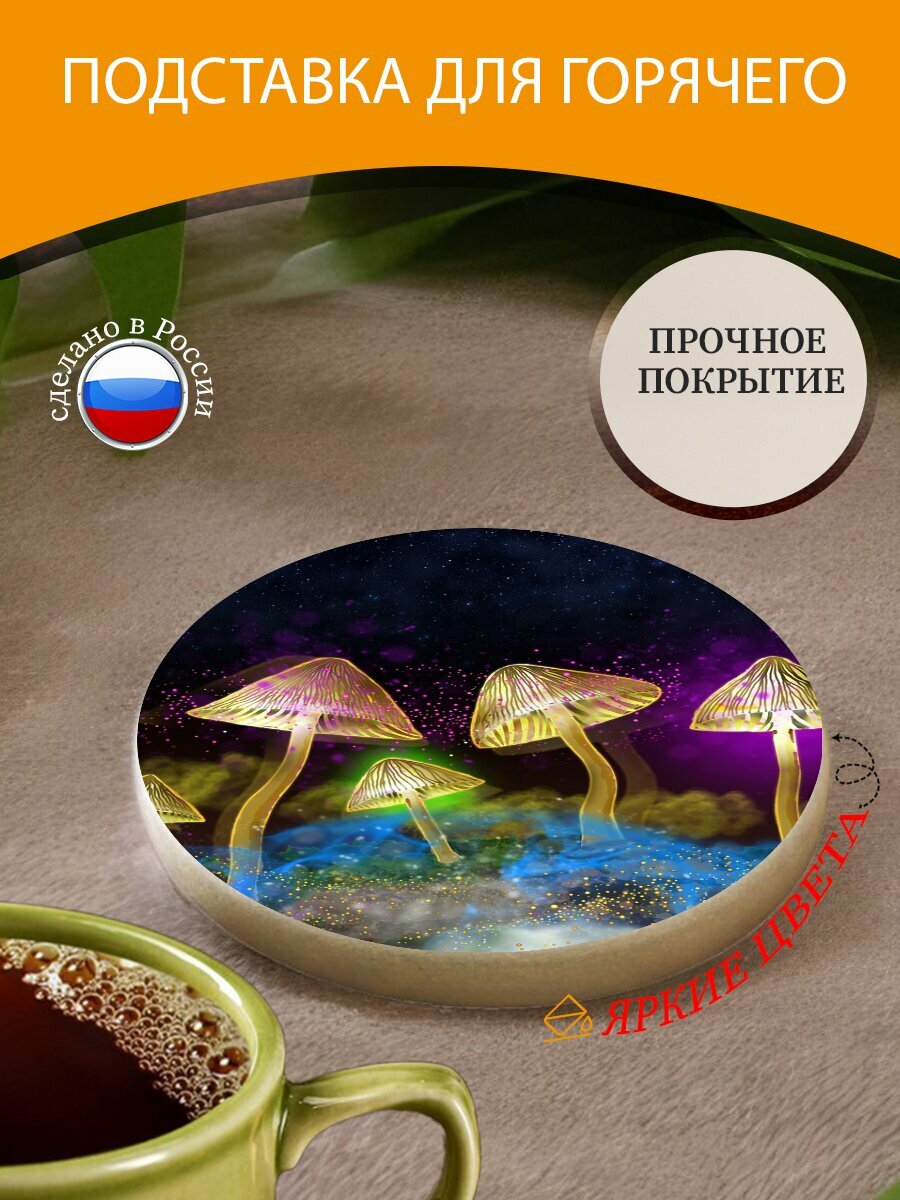 Купить Подставка под горячее "Светящиеся грибы, грибы, светятся" 10 см. из блого мрамора