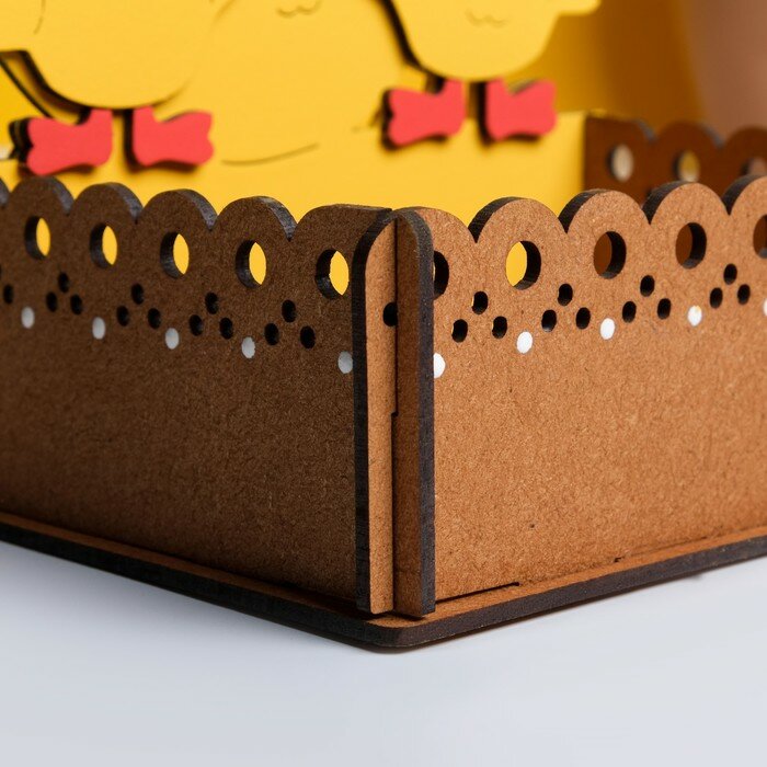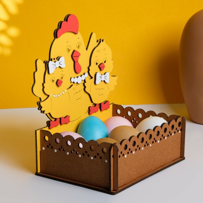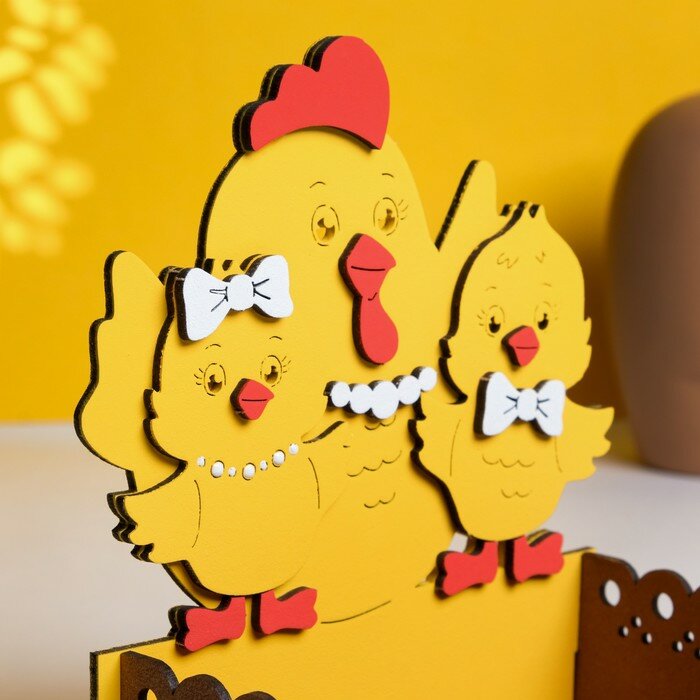 Купить Кашпо деревянное "Курочка с цыплятами", 15,5х11х17,5 см, коричнево-желтый