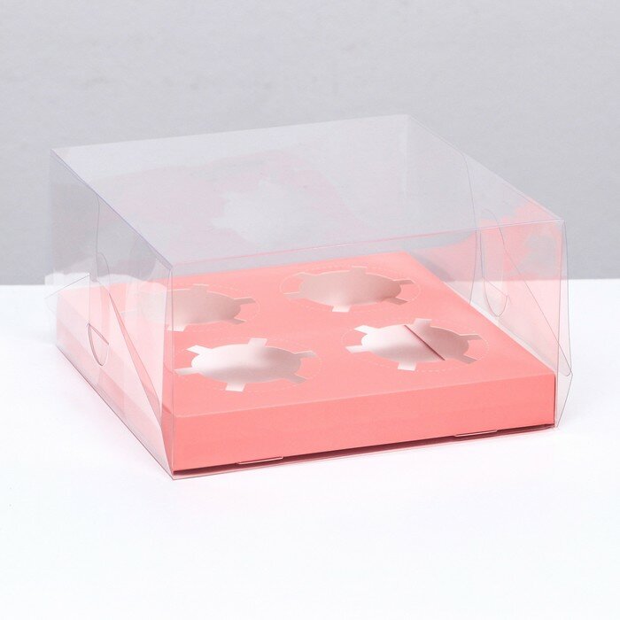 Купить Коробка на 4 капкейка, розовый, 18.5 × 18 × 10 см