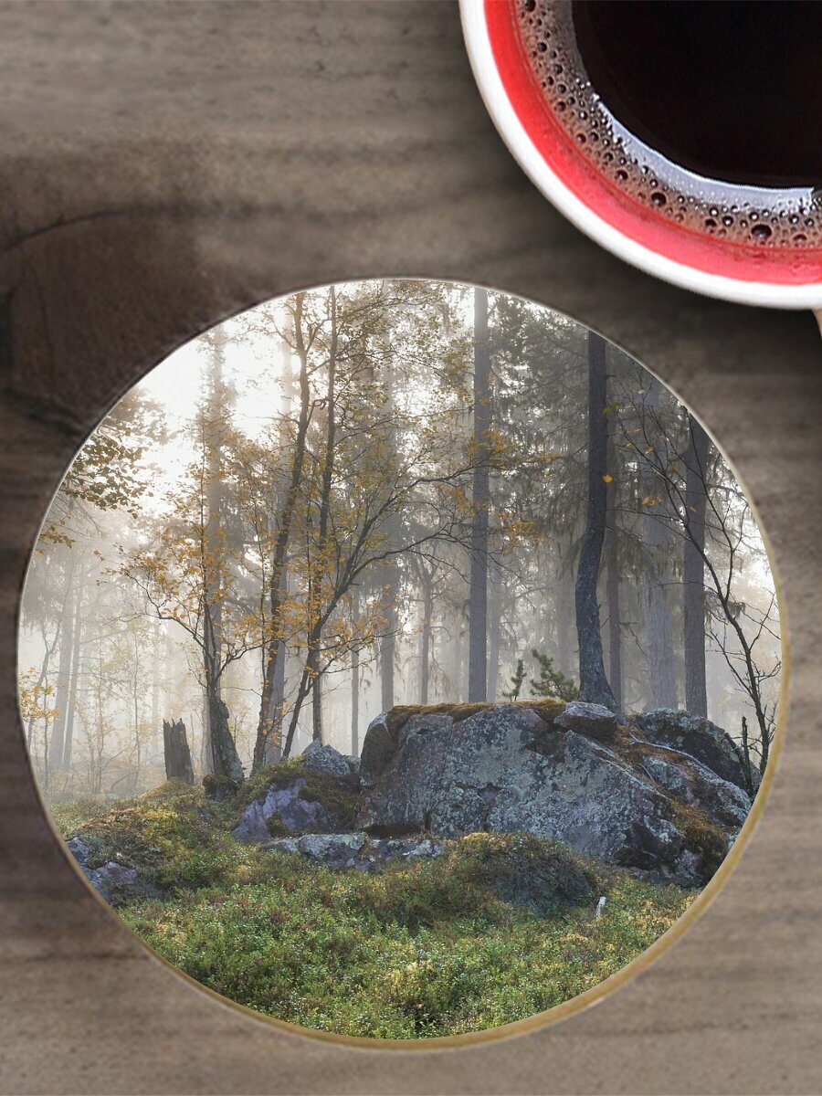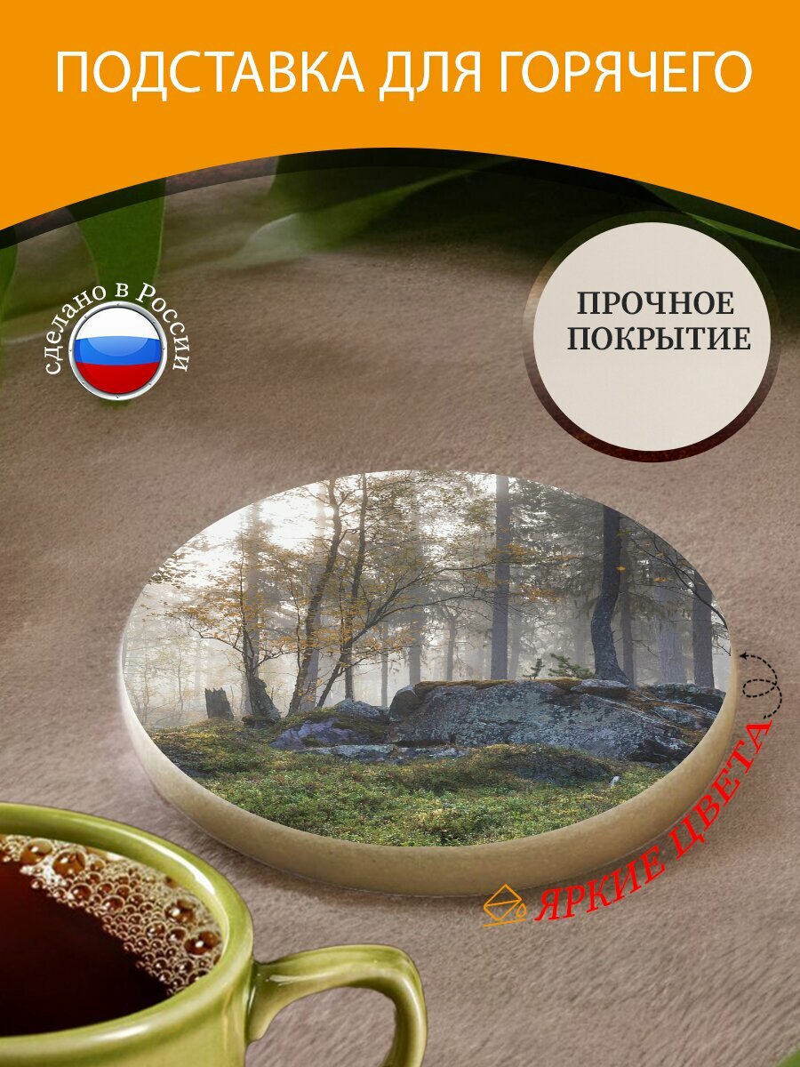 Подставка под горячее "Камень, лес, осень" 10 см. из блого мрамора интересное:
