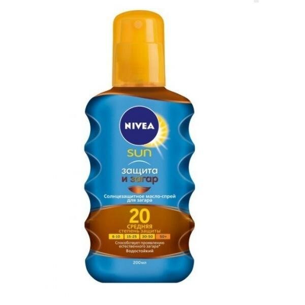 Солнцезащитное масло-спрей для загара Nivea Sun "Защита и загар" SPF 30, водостойкое, 200 мл.