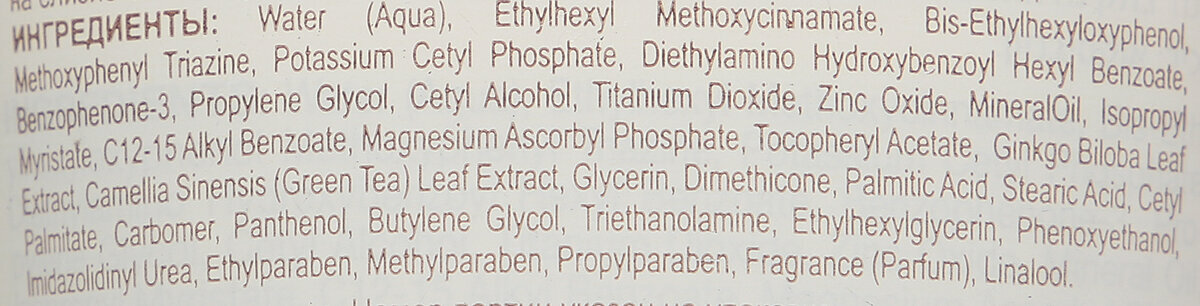 | Плюсы: | Настоящая защита физическими фильтрами. На коже остаётся слой, но он без эффекта пленки, жирности - кожа дышит. У меня очень чувствительная жирная кожа, которая шелушится (нет, не комбинированная, шелушится именно там, где жирная), но кожа реагирует хорошо. В морщины не забывается. Наношу пол чайной ложки на лицо. Остаётся белесый налет. Но после того, как немного впитается, то и он проходит. Под тональном не видно совсем.