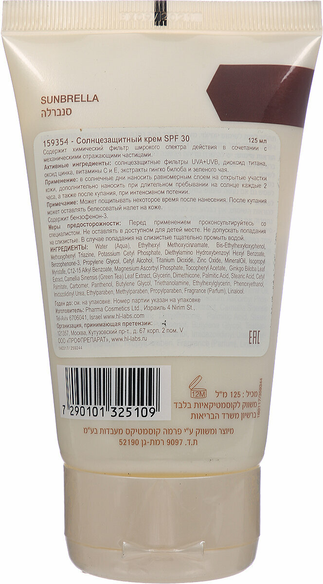 Holyland Laboratories Sunbrella SPF 30 Солнцезащитный крем 125 мл