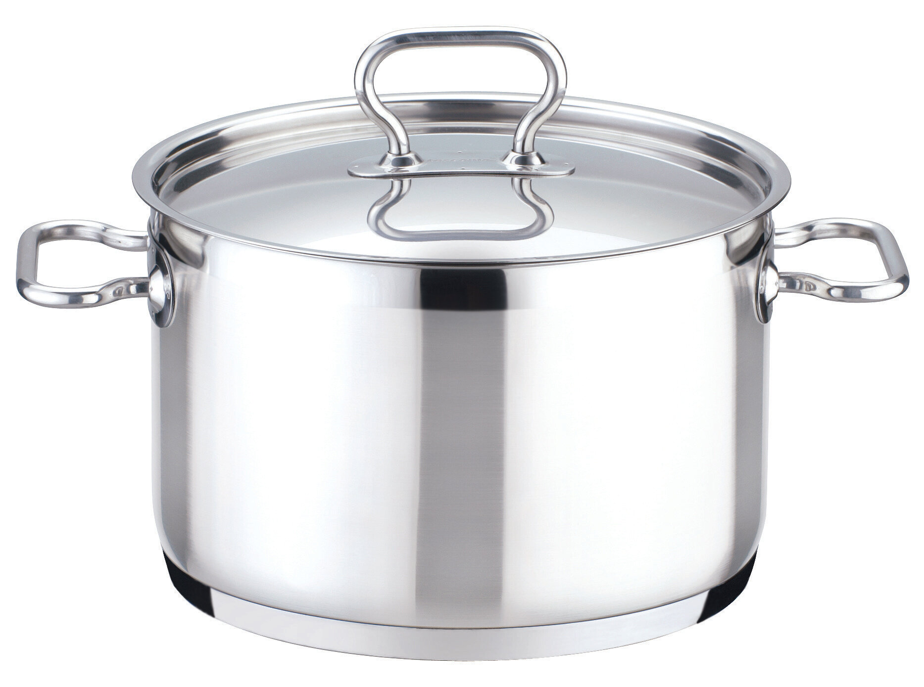 Каждая ручка сварена в восьми местах точечной сваркой. Металлическая крышка. Ручки не нагреваются. Подходит для всех видов плит. |