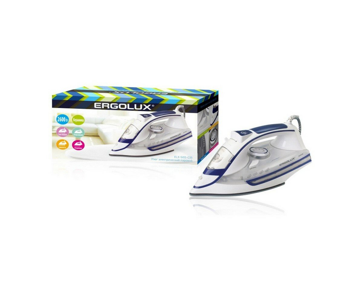 Утюг ERGOLUX ELX-SI03-C35 белый/синий (паровой, керамика, 2600Вт, 220-240В)